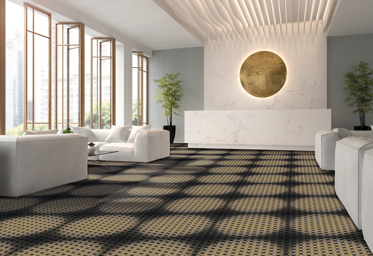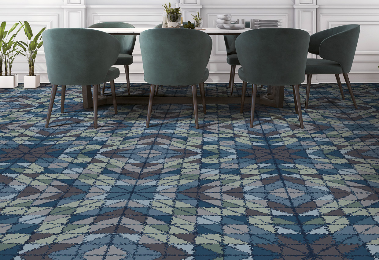 «Q Step Tiles» предлагает 36 универсальных вариантов дизайна для отелей в шести спокойных расцветках. Доступные размеры - 60 × 60 см, 120 × 120 см, а также 180 × 180 см.